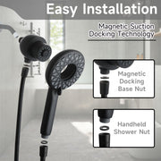 High Pressure Shower Heads 6 Spray Mode Handheld Shower With 60" Stainless Steel Hose - Matte Black