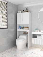 Home Bathroom Shelf Over-The-Toilet, Bathroom Spacesaver, Bathroom Storage Cabinet Organizer - White