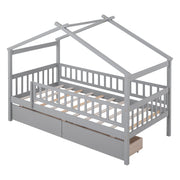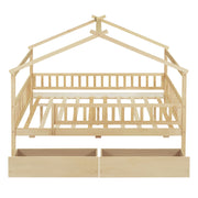 Spacious Storage: The wooden house platform bed includes two built-in drawers, providing ample storage for clothes and toys. This design maximizes space while helping your child develop good organization habits, making it a perfect space-saving solution.