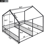 House Platform Beds, 2 Shared Beds, Metal Frame With Guardrails