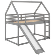 House Shape Twin Over Twin Bunk Bed With Slide And Ladder - Gray