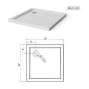 Shower Base, Centered Drain, No Threshold, 5 Layer - White