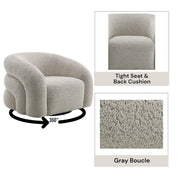 - Swivel Design: The Irma Gray Boucle Chair features a 360-degree swivel mechanism, allowing for flexible movement and easy reorientation without needing to move the entire chair.