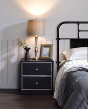 • Elegant Design: This accent table boasts a sleek black finish, complemented by silver-colored line accents on the front of its metal slide drawers, offering a touch of elegance and sophistication to its overall design.
