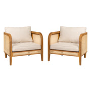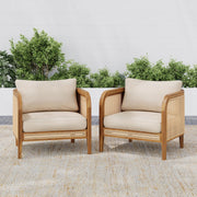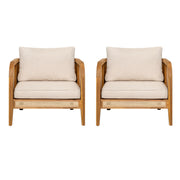 Kirkby - Outdoor Patio Cushioned Arm Chair (Set of 2) With Frame And Wicker Backrest - Teak / Beige