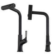 Modern Kitchen Waterfall Faucet With Pull Down Sprayer, Single Handle, 360 Degree Rotating - Matte Black