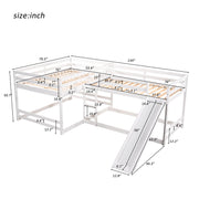 Full And Twin Size L-Shaped Bunk Bed With Slide And Short Ladder - White