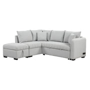 L-Shaped Sectional Pull Out Sofa Bed Sleeper Sofa With Two USB Ports, Two Power Sockets And A Movable Storage Ottoman - Gray