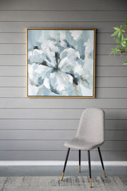 Large Modern Flower Oil Painting, SquareFrame Wall Art - Blue / Gray