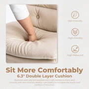 Overall Dimension of 24.21"W*26.38"D*31.5"~37"H, Seat Size of 24.21"W×20.67"D; Holds over 300 LBS with its solid wooden frame and legs. Its roomy depth and width improve the sitting comfort and even allow you to cross-legged for long-time reading or conversation.