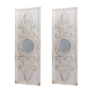Large Wooden Wall Art Panels With Distressed Round Mirror Accents (Set of 2) - White