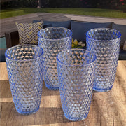 Leading Ware Diamond Cut Acrylic Drinking Glasses (Set of 4), Bpa Free, 19Oz - Blue