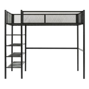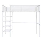 This metal loft bed with storage space is made from sturdy metal and features a clean-cut silhouette that complements any room decor. It includes 4-tier open shelves and a storage shelf beside the bed guardrail, making it easy to grab items without getting out of bed. With this collection, you can transform any space into a workstation, reading nook, or lounge area.