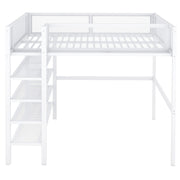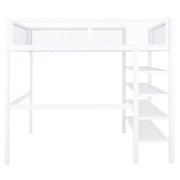 Full Size Loft Bed With 4 Tier Shelves And Storage - White