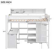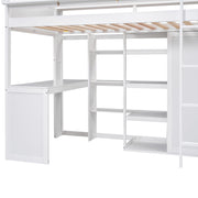 Twin Size Loft Bed With Built In Desk, Storage Shelves, And Wardrobe - White