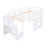 Twin Size Loft Bed With Storage Staircase, Window & LED Light - White