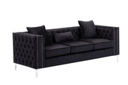 Glam up your living room with the Lorreto Collection! Crafted from fine wood and quality fabrics, this sofa features an abundance of button tufting. The double nail-head trim adds a touch of elegance while the low back adds better lumbar support. Entertain your guests and family members in comfort and style.
