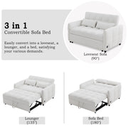 Loveseat Sofa Pull Out Sofa Bed Tufted Sleeper Sofa With An Adjustable Backrest, 3 USB Ports And 2 Lumbar Pillows For Living Room - Beige