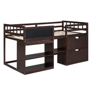 Twin Size Low Loft Bed With Rolling Desk, Shelf And Drawers - Espresso