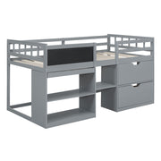Twin Size Low Loft Bed With Rolling Desk, Shelf And Drawers - Gray