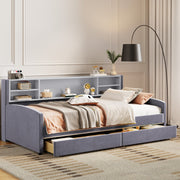 Twin Size Upholstered Platform Bed With Storage Drawers And Headboard - Gray