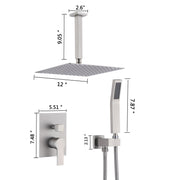 Luxury 12" Ceiling Mount Rainfall Shower System With Brass And Stainless Steel - Brushed Nickel