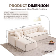 Ly 029B Convertible Chaise Sectional Sofa Full Compression Sponge Modular Couch Cloud 3 Seater Wood Grain Chenille 2 Pillows - Antique White