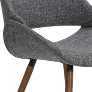 • Mid Century Modern styling includes comfortable curved padded seat and seat back, walnut veneer on bentwood frame and angled legs