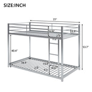 Full Over Full Metal Bunk Bed, Low Bunk Bed With Ladder - Silver