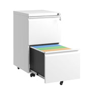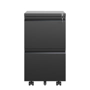 Sleek Modern 2 Drawer Metal Mobile File Cabinet With Lock, Compact Size - Black
