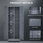 - Versatile Storage: Equipped with hanging rods and shelves, ideal for organizing tools, clothes, and towels. Suitable for use in garages, offices, or basements.