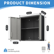 Metal Wall Mounted Tool Storage Cabinet With 2 Locking Doors, Adjustable Shelf, And Drawer - Black
