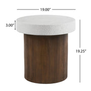Mgo Cylindrical Side Table With Faux Stone Top And Wood Faux Base - Antique White / Natural
