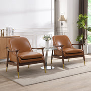 Mid Century Accent Chair Set With Cushioned Seat, Solid Wood Frame, Brass Tipped Legs - Brown