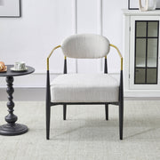 Mid Century Modern Upholstered Accent Armchair With Tapered Legs - Beige / Black / Gold