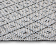 - Detailed with a geometric pattern in silver grey featuring a hand-knotted fringe