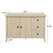 Modern 2 Door 3 Drawer Storage Cabinet, Buffet Cabinet With 2 Embossed Door For Living Room, Kitchen, Entryway - Natural
