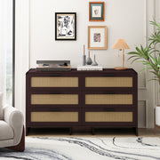 Arc Shaped Corner Rattan Cabinet With 6 Drawers - Reddish Brown