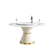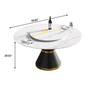 59.05" Modern Artificial Stone Round Carbon Steel Base Dining Table, Can Accommodate 6 People Artificial Stone Turntable - White