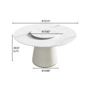 Modern Artificial Stone Round Plywood Base Dining Table, Can Accommodate 6 People, Artificial Stone Turntable (Not Including Chairs) - White / Beige