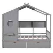 Twin Size House Bed With 2 Drawers, Kids Bed With Storage Shelf - Gray