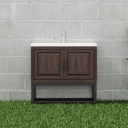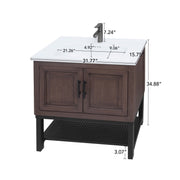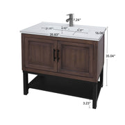 Modern Freestanding 36" Bathroom Vanity With Ceramic Sink, Hot And Cold Faucet, 2 Door Cabinet & Open Iron Shelf - Walnut
