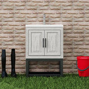 Modern Freestanding Bathroom Vanity With Ceramic Sink, Hot And Cold Faucet, 2 Door Cabinet & Open Iron Shelf, Magnesium Oxide And Iron Frame - Natural
