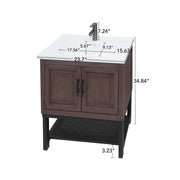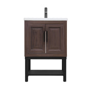 Modern Freestanding Bathroom Vanity With White Ceramic Sink, Hot And Cold Faucet, 2 Door Cabinet & Open Iron Shelf, Magnesium Oxide And Iron Frame - Walnut