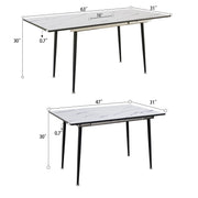 Modern Industrial Expandable Dining Table 47" To With Marble Pattern Top And Metal Legs - White