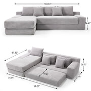 Modern L Shaped Sectional Sofa With Memory Foam & Steel Frame, Corduroy Fabric - Light Gray