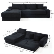 Modern L Shaped Sectional Couch With Memory Foam And Steel Frame - Black
