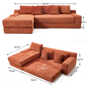 L Shaped Sectional Couch With Memory Foam & Steel Frame Convertible Sofa Bed - Orange