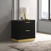 Nightstand With 2 Drawer Storage Wooden Bedroom Furniture - Black / Gold