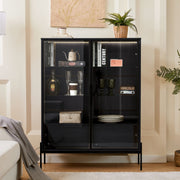 Modern Minimalist Style LED Curio Cabinet With Tempered Glass Door, Metal Legs - Black